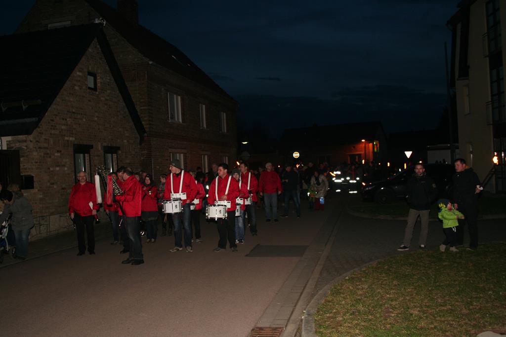 Pünktlich 19 Uhr setzte sich unser Spielmannszug auf dem Gemeindevorplatz in Bewegung. Nach einer kleinen Runde im Dorf ging es geradewegs zum Osterfeuer. Viele Bürger Röblingens aber auch Ortsfremde nutzten die Gelegenheit und liefen mit Kindern und Enkelkindern zum Fackelumzug. Ein sehr schönes Bild bot sich den bereits anwesenden Gästen als der Spielmannszug mit dem traditionellen Bergmannsmarsch den Platz, gefolgt von vielen hundert Erwachsenen und Kindern mit Laternen und Fackeln, betrat. Im Anschluss wurde das Osterfeuer mit Worten des Bürgermeisters Jürgen Ludwig, Musik des Spielmannszuges, den Fackeln der Kinder sowie einigen Raketen eröffnet. Viele nahmen jetzt die Gelegenheit war sich erst einmal zu stärken. Die Versorgung reichte von Bockwurst, Rostbratwurst, Steak, Fischbrötchen über Kräppelchen, Pilzpfanne, Fettbemme bis zum vegetarischen Fladenbrot. Ach verdursten musste niemand. Neben zwei Bierwagen und einem Cocktailwagen gab es auch zum aufwärmen Glühwein, Tee und Kaffee. Gegen acht Uhr fand dann auch der Osterhase zu uns und überraschte die Kinder mit einer Kleinigkeit. Danach heizte unsere Tanzgruppe „Dancing Flames“ dem kleinen und großen Publikum richtig ein. Gegen 21:00 Uhr war es dann soweit, unser traditionelles Höhenfeuerwerk wurde gezündet. Mit vielen „Ahhs“ und „Ohhhs“ wurde es bestaunt und am Ende mit einem großen Applaus gewürdigt. Nun war DJ Silvan an der Reihe. Er brachte mit seiner Musik den Platz bis morgens um 02:00 Uhr zum beben. Im Anschluss begannen die Kameraden schon damit den Platz zu säubern.