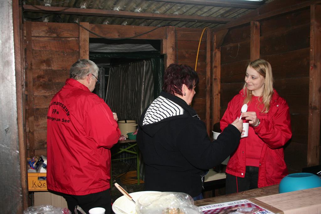 Am Donnerstagmorgen ging es nicht weniger ruhig weiter. Jetzt mussten noch die „Feinarbeiten“ erledigt werden. Eine komplette Stromversorgung wurde eingerichtet, die Tanzdielen wurden verlegt, Stehtische sowie Bierzeltgarnituren aufgebaut. Als gegen Mittag der Getränkehändler lieferte mussten die Bierwagen bestückt und eingeräumt werden. DJ Silvan stieß am frühen Nachmittag zu uns bereitete alles für die Disco am Abend vor und Feuerwerker Schmidt bestückte das Osterfeuer mit Raketen. Aber das Equipment für die Essenversorgung sowie Arbeitsflächen für die die jeweiligen Buden wurden eingerichtet. Gegen 17 Uhr war alles so fertig, dass nur noch die Gäste fehlten. Gegen 18 Uhr kamen die ersten Kameraden und Helfer die für diesen Abend mit der wichtigste Pfeiler sind. Das Personal in und hinter den Verkaufsständen ohne die nichts laufen würde. Sie richtete sich Ihren jeweiligen „Arbeitsplatz“ ein und warteten mit einem Lächeln auf den Lippen das es los geht.